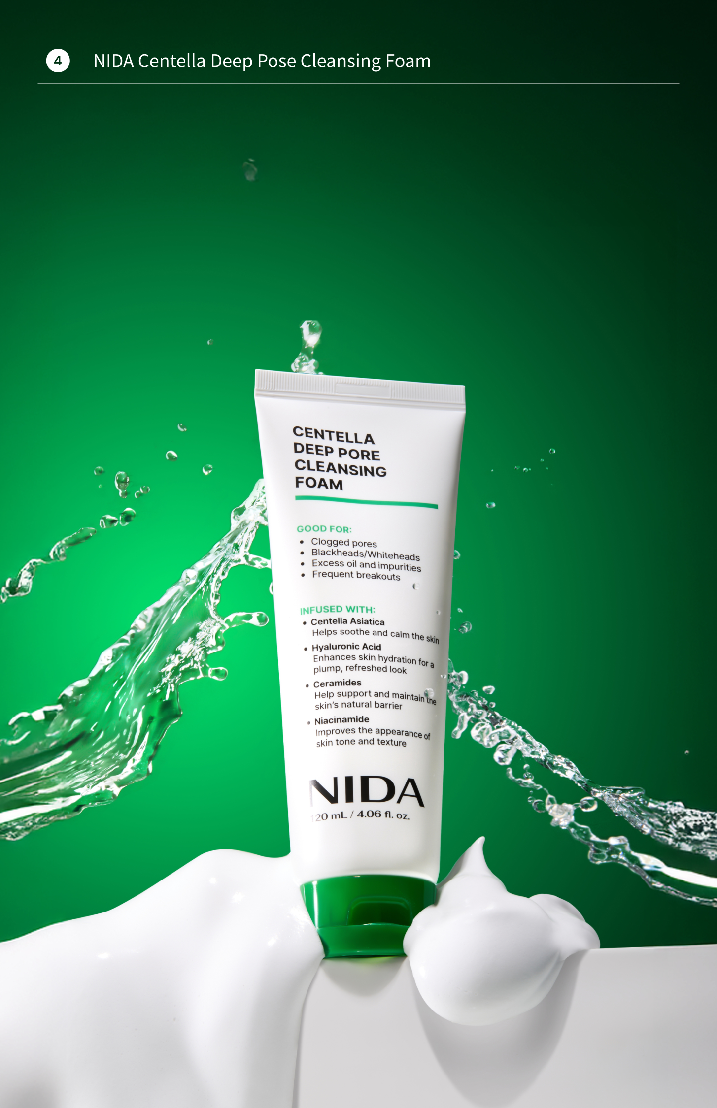 • 🌿 Centella Deep Pore Cleansing Foam (120ml): Centella Asiatica, Hyaluronic Acid, Ceramides, Niacinamide — gentle deep cleanse for clogged pores and breakouts.