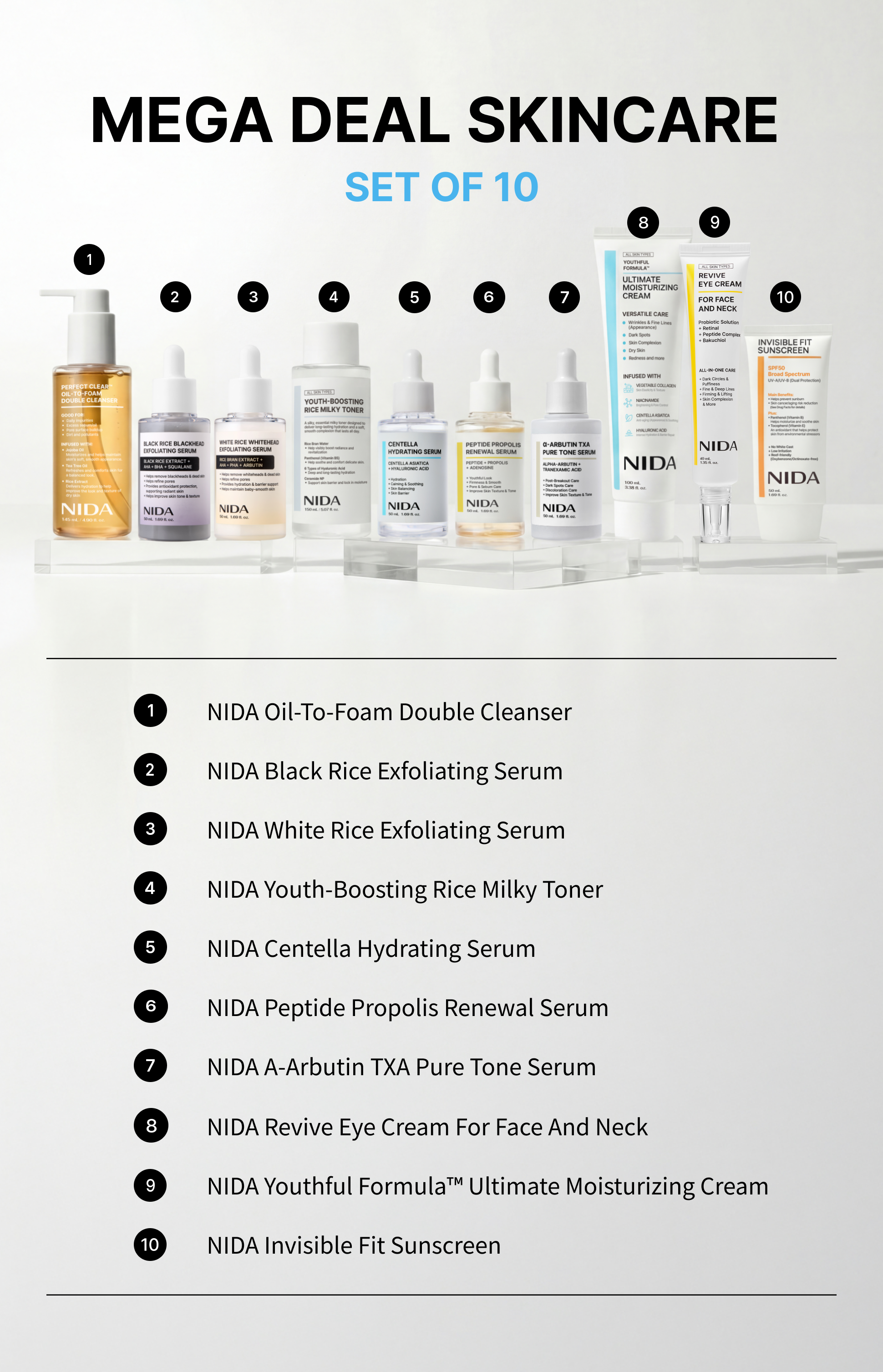 • 1️⃣ NIDA Oil-to-foam Double Cleanser