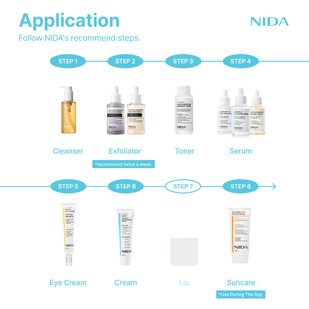 • 3️⃣ NIDA White Rice Exfoliating Serum