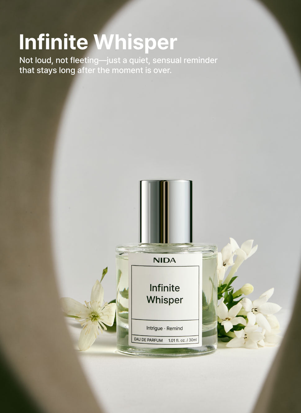 There are scents that speak loudly, and then there are those that whisper endlessly—staying in the mind long after the moment has passed. NIDA “Infinite Whisper” is a fragrance designed for the curious, for those who leave a trace of mystery every time they walk away.