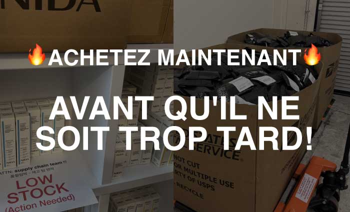 Nous livrons dans le monde entier depuis nos entrepôts partenaires aux États-Unis et en Corée. Pour les clients américains, nous proposons une livraison nationale depuis notre entrepôt américain. Pour les clients des autres pays, nous expédions directement depuis notre entrepôt en Corée. Nous livrons actuellement dans plus de 20 pays, dont Singapour, l'Australie, le Canada, l'Allemagne, le Japon, le Royaume-Uni et bien d'autres.