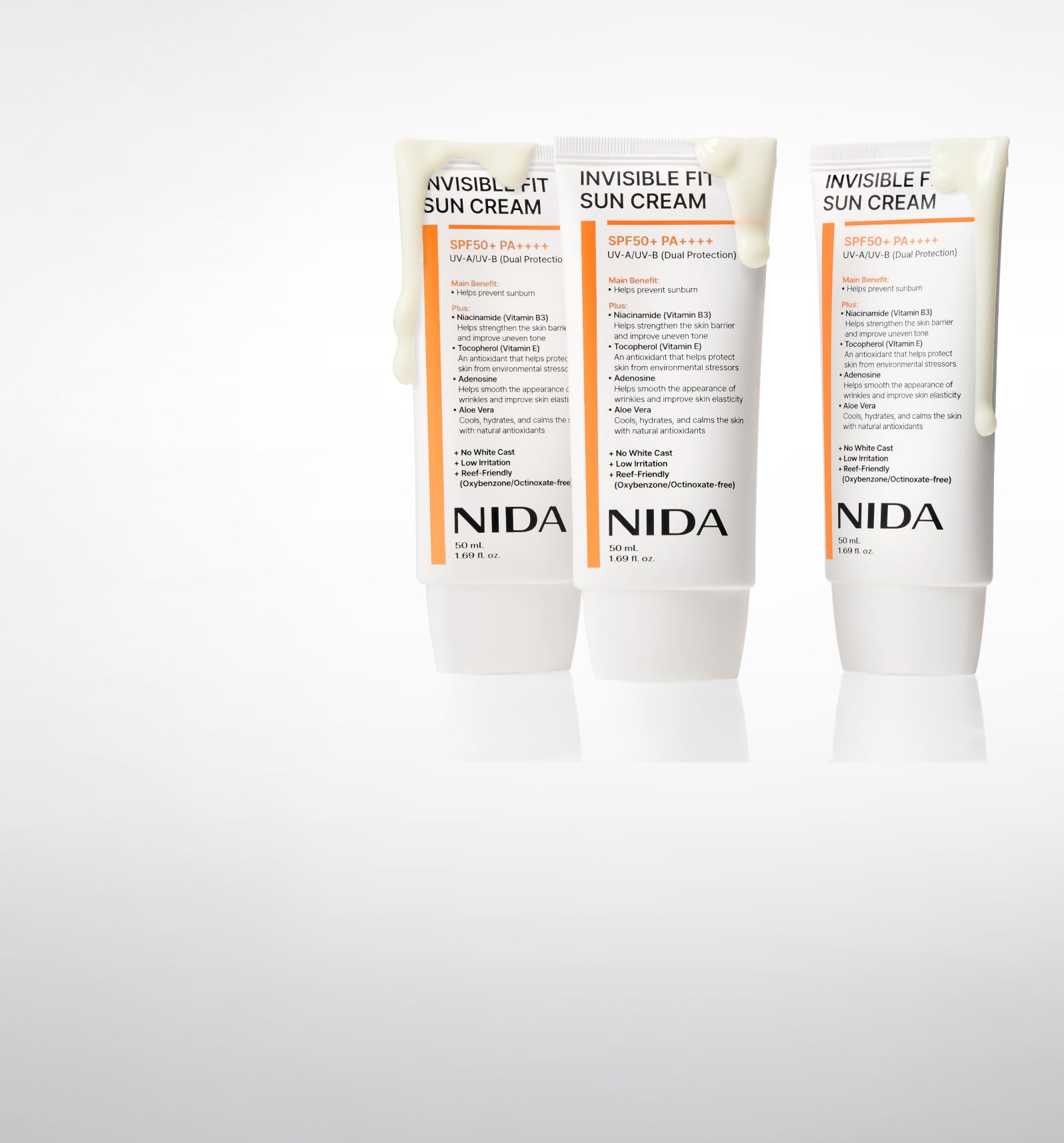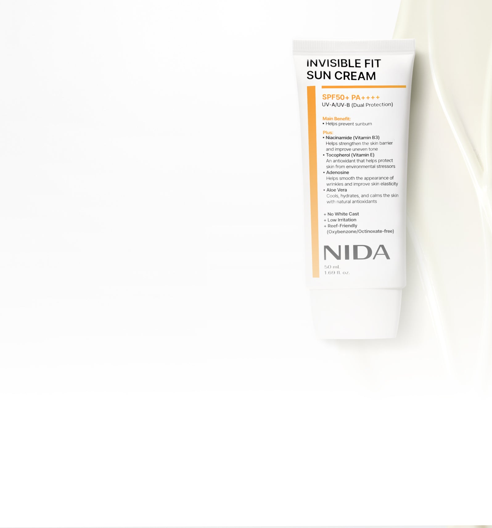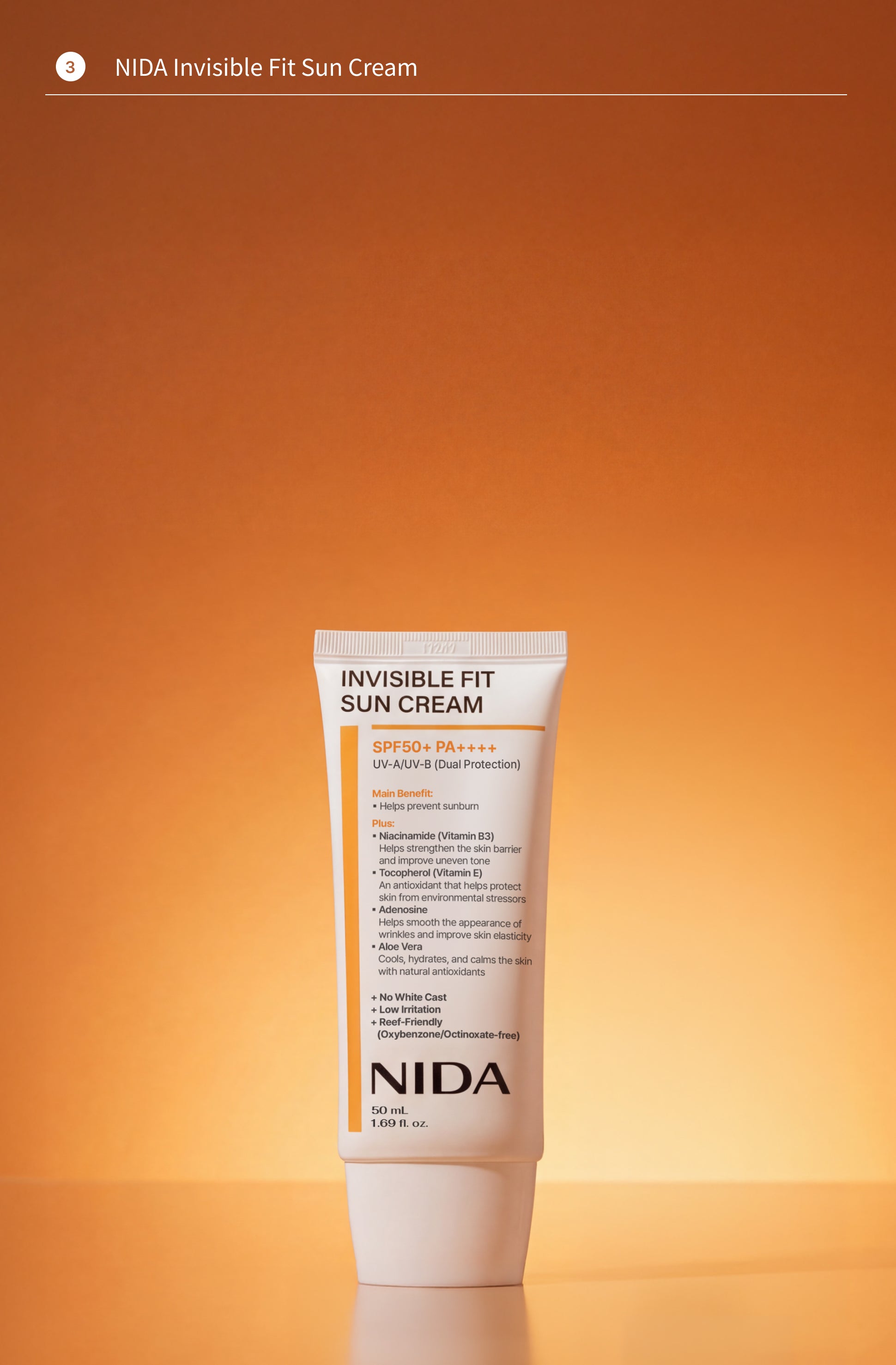 ☀️ Invisible Fit Sun Cream: Niacinamide, Adenosine, Tocopherol, Aloe Vera, Hyaluronic Acid — SPF50+ PA++++, No White Cast, Reef-Friendly (Oxybenzone/Octinoxate-free)