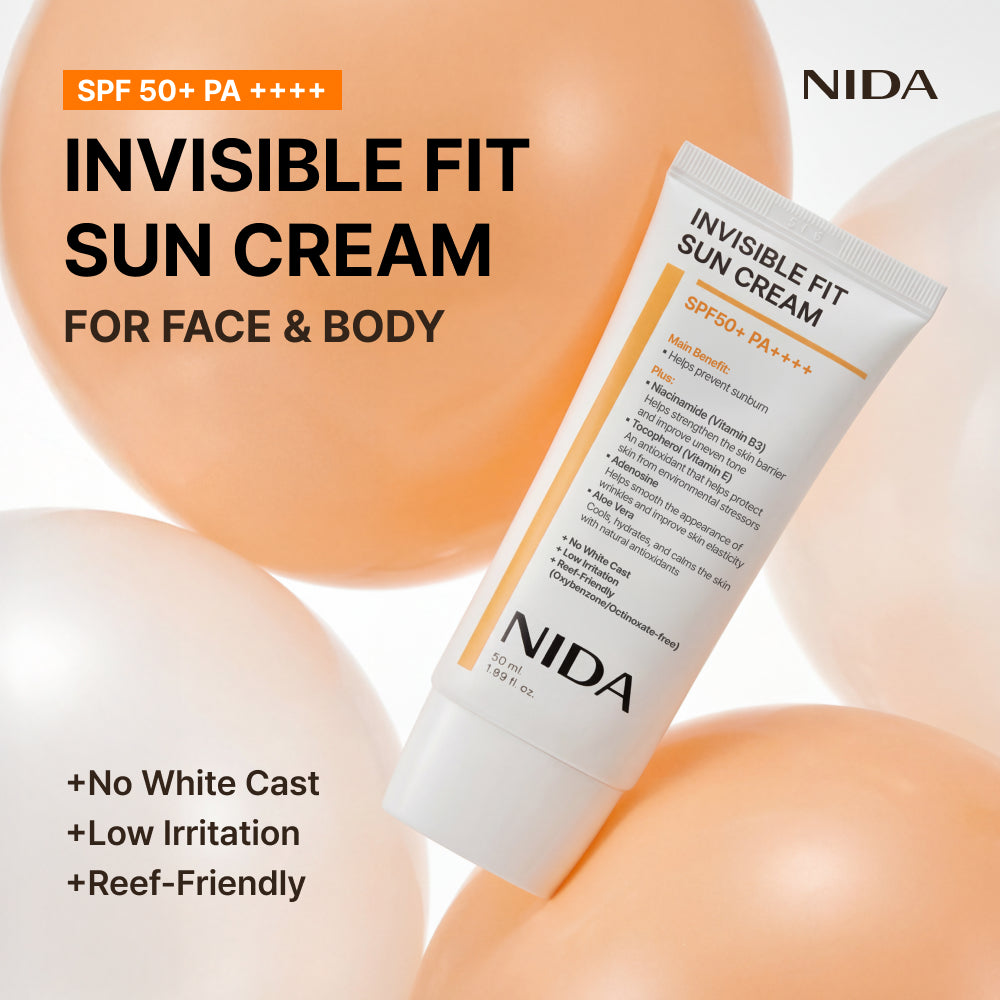 • 2️⃣ NIDA Invisible Fit Sun Cream For Face and Body