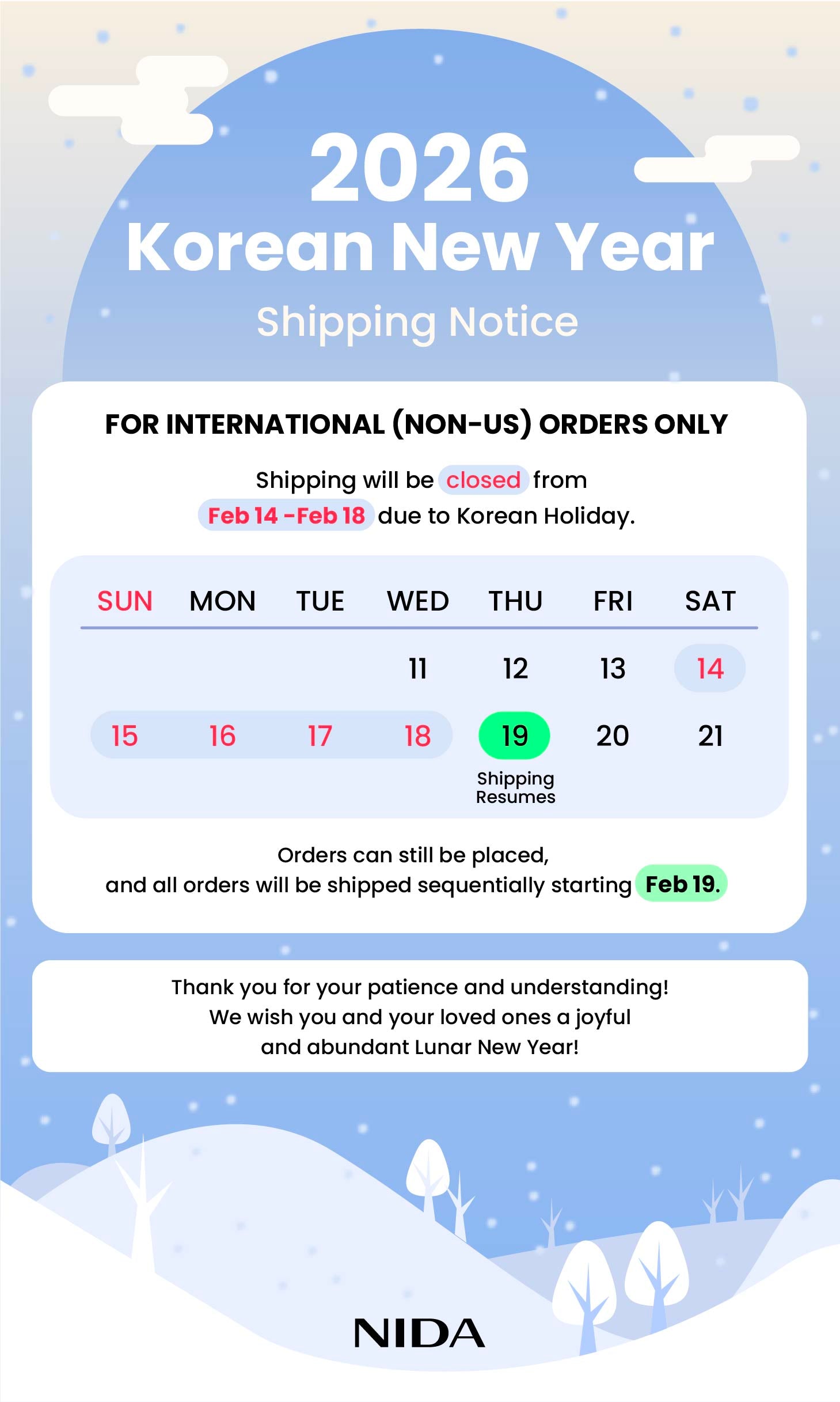 For more details, please check our Shipping Info page or contact us at cs@nida.co