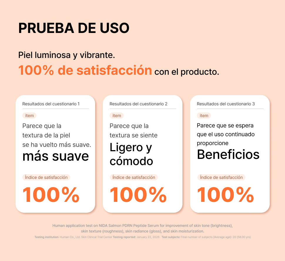 Agua, PEG-8, Glicerina, Butilenglicol, Niacinamida, Dipropilenglicol, 1,2-Hexanediol, ADN de Sodio, Arginina, Carbómero, Caprilil Glicol, Trehalosa, Glucósido de Glicerilo, Goma Xantana, Pululano, Lecitina Hidrogenada, Adenosina, Hialuronato de Sodio, EDTA Disódico, Cafeína, Goma Biosacárida-1, Extracto de Centella Asiática, Etilhexilglicerina, Tripéptido de Cobre-1, Digaloil Tetrapéptido-19, Acetil Hexapéptido-8, Palmitoil Pentapéptido-4, Palmitoil Tetrapéptido-7, Palmitoil Tripéptido-1