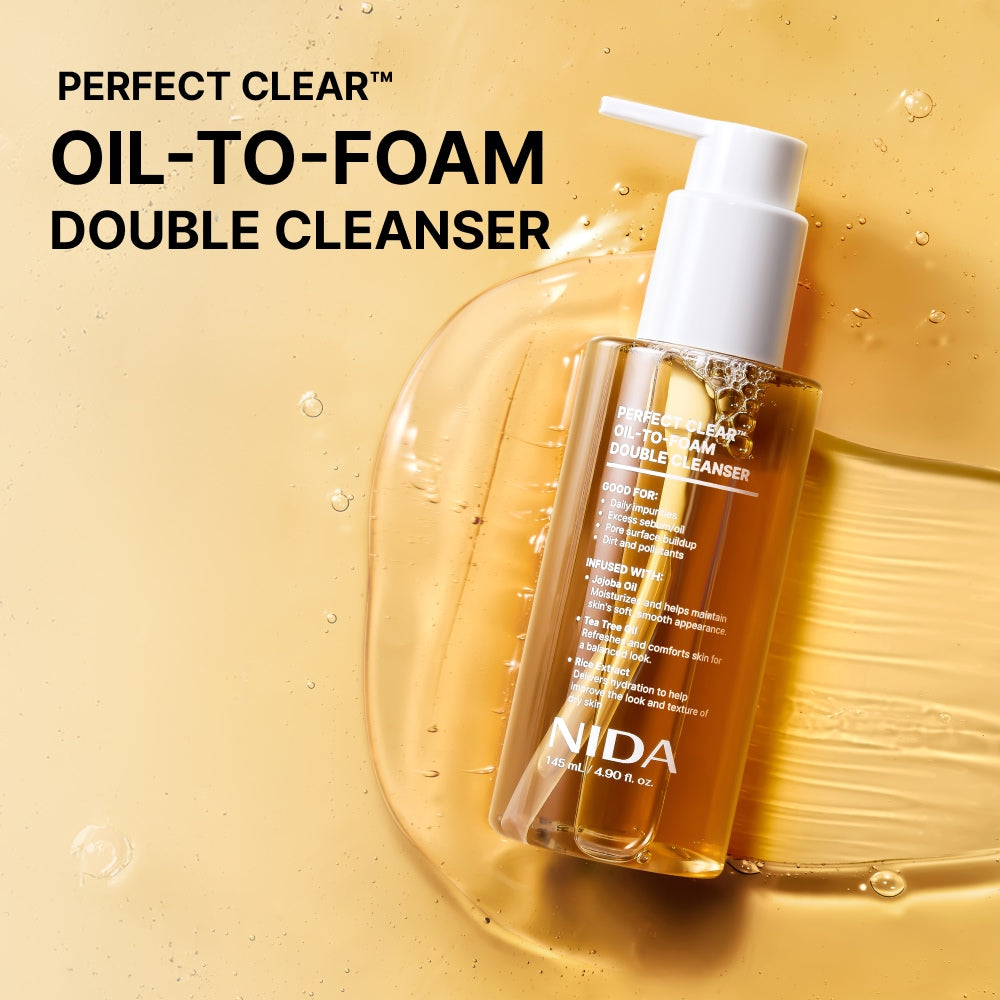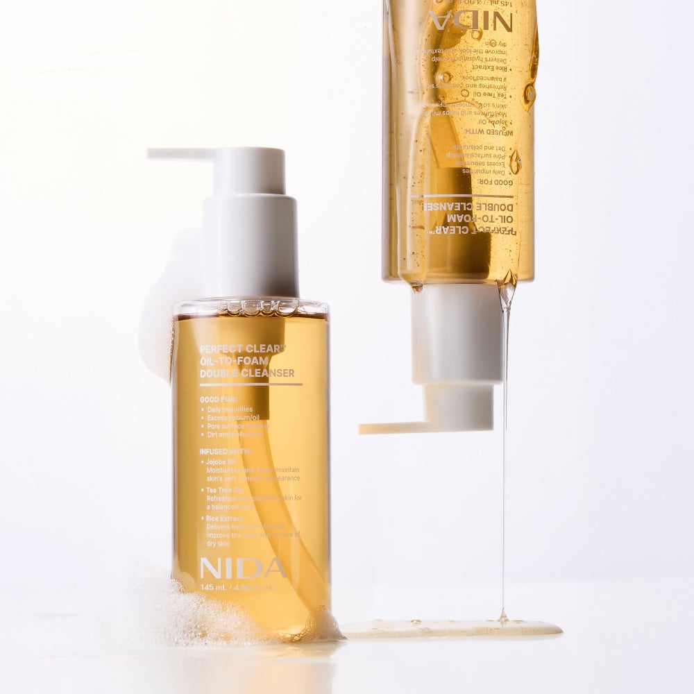 Dile adiós a las complicadas rutinas de doble limpieza. Con el limpiador de aceite a espuma NIDA Perfect Clear™, experimenta la magia de una limpieza completa en un solo paso: ¡el maquillaje desaparece, los poros se sienten purificados y la piel luce radiante! 🧴