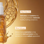 • Aceite de árbol de té: Refresca y reconforta la piel para una apariencia equilibrada y clarificada.
