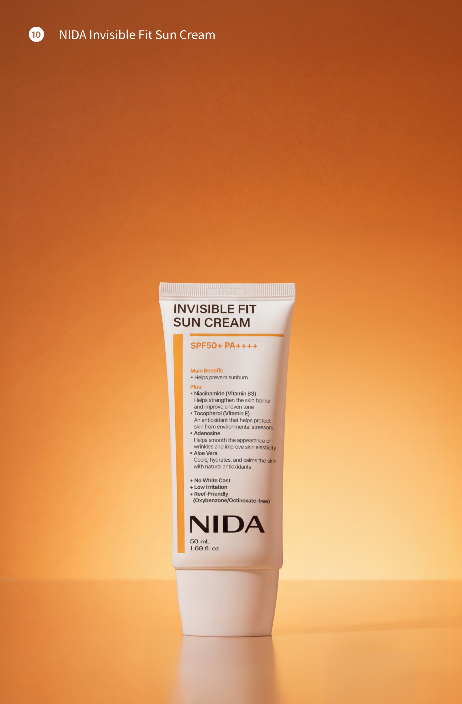 • 🔟 NIDA Invisible Fit Sun Cream