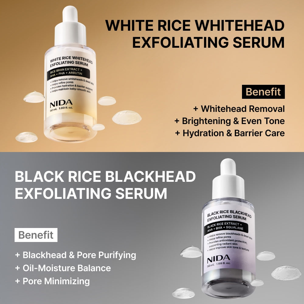 • 2️⃣ NIDA Black Rice Exfoliating Serum