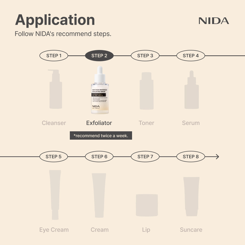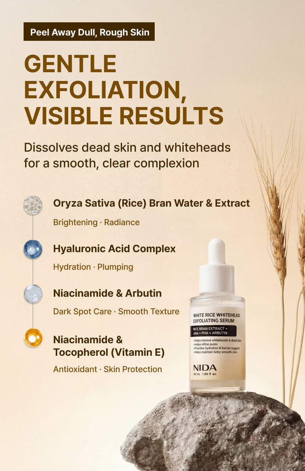 Suero exfoliante de arroz blanco NIDA para puntos blancos